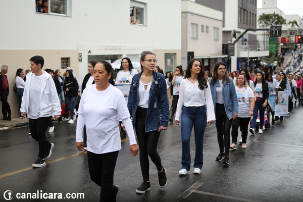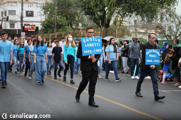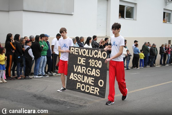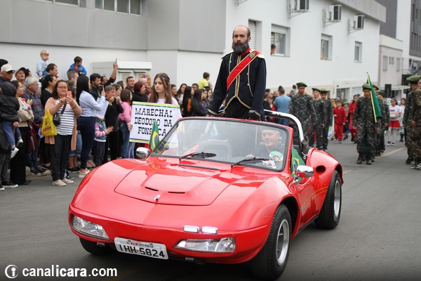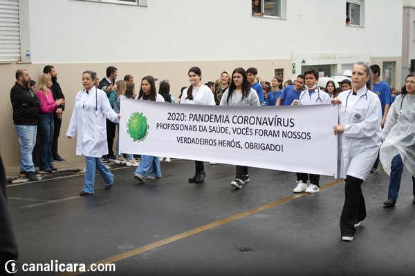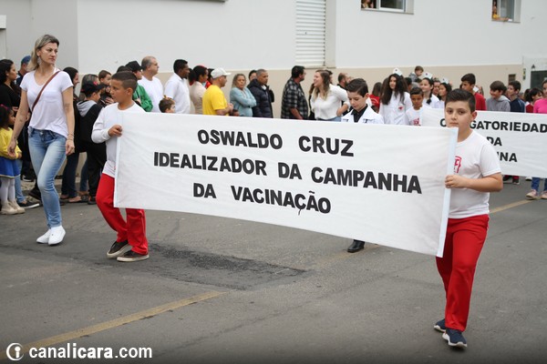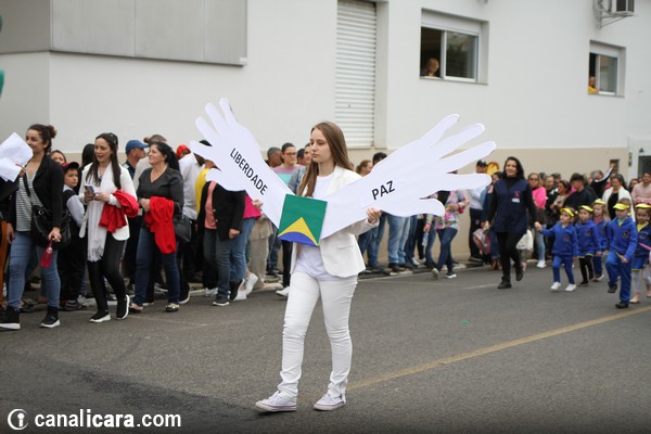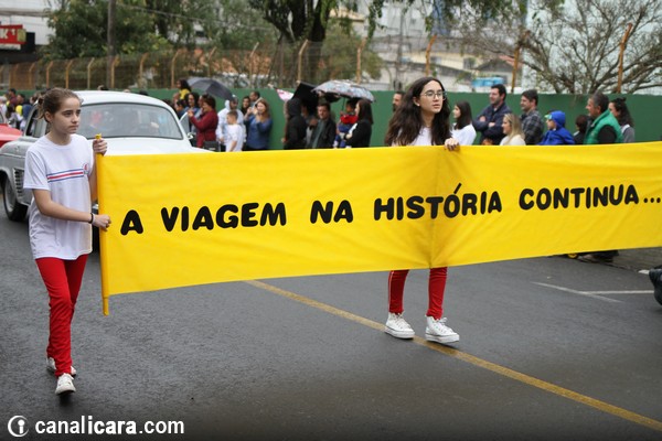 Entidades, escolas e forças de segurança fizeram parte da comemoração do bicentenário da independência na Rua Altamiro Guimarães nesta quarta-feira, dia 7. Mais de 50 pelotões ocuparam do Paço Municipal até a Praça da Matriz, onde ficou o palanque com autoridades. Neste ano, as unidades de ensino da cidade tiveram como desafio traduzir neste trajeto cada década dos últimos 200 anos para o público.