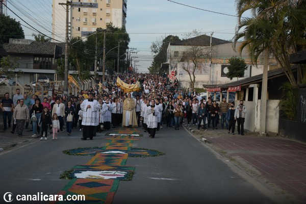 A Paróquia São Donato mobilizou a comunidade içarense numa demonstração de fé pela passagem do Dia de Corpus Christi. A celebração, que iniciou às 15 horas, marcou a tarde desta quinta-feira, dia 16, em Içara com a procissão na Rua Duque de Caxias. O trajeto seguiu entre a Igreja Matriz e o Colégio Cristo Rei.