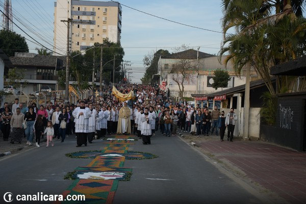 Procissão percorreu trajeto entre a Igreja Matriz e o Colégio Cristo Rei