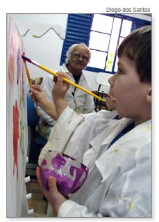 Da imaginação para pinceladas que misturam cores e formas. Nesta quinta-feira, dia 8, foi a vez da garotada do Centro de Educação Infantil pequeno Príncipe, no Raichaski, receber a visita de José Nunes Teixeira. A demonstração do que é pintar acabou na prática, assim como ocorrerá em outras unidades até o próximo dia 14. "Acredito que esta atividade vá suprir a curiosidade dos pequenos", relata o artista plástico chamado para integrar o projeto do Grupo de Estudos de Arte de Içara (Geai).