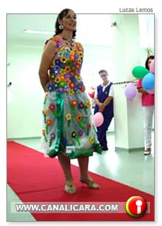 A troca de experiências na Semana Interna de Prevenção ao Acidente de Trabalho (Sipat) do Hospital São Donato foi encerrada nesta sexta-feira. E para coroar a primeira gincana do evento, as quatro equipes de funcionários se fizeram presentes numa passarela. Todas com modelos vestidas ecologicamente. Sacolas plásticas viraram um vestido de noiva. Jornais e retalhos plásticos foram transformados em um vestido festivo. Materiais plásticos ainda resultaram num vestido de gala. E tampas de medicamentos coloriram a blusinha e saia de Mirinha Antunes, a Rainha da Sucata.