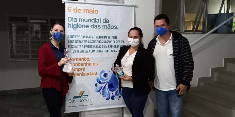 A rotina necessária para a higienização das mãos foi reforçada pela Comissão Interna de Prevenção aos Acidentes de Trabalho do Hospital São Donato junto com a entrega de kits nesta quarta-feira. A recepção especial dos colaboradores abriu a Semana Interna de Prevenção aos Acidentes de Trabalho, que seguirá, neste ano, com atividades online na programação.