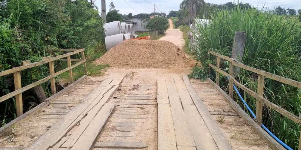 Enquanto a ponte definitiva não fica pronta, os dois municípios se uniram para fazer uma obra paliativa
