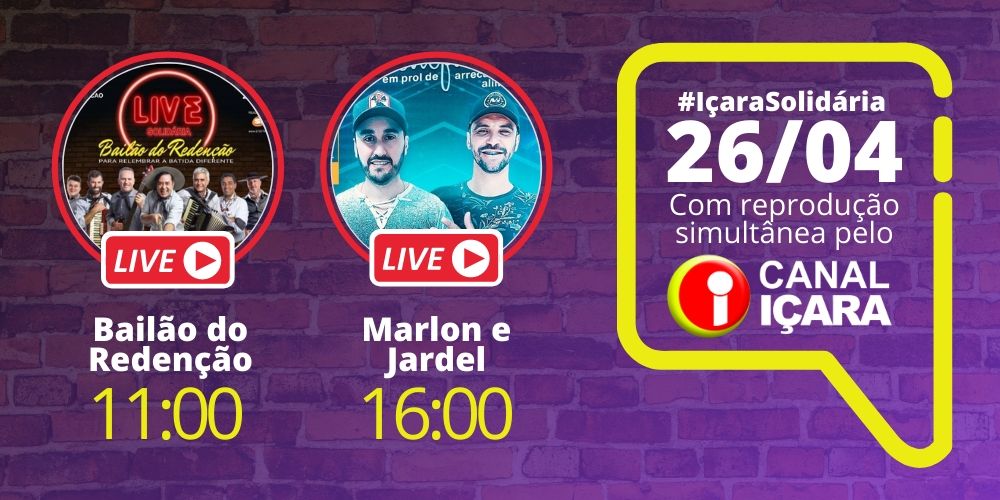 Domingo vai ser de muita música e solidariedade. O Bailão do Redenção será transmitido direto do Rhóis Centro de Eventos a partir das 11h. Já às 16h acontecerá o show de Marlon e Jardel em uma estrutura preparada no Balneário Rincão. Ambos poderão ser acompanhados pelas redes sociais das bandas ou diretamente pelo Portal Canal Içara com o objetivo de arrecadar alimentos e itens de higiene para as famílias da região, além de suprimentos hospitalares. As doações serão registradas com o envio de mensagens para números de WhatsApp que estarão disponíveis durante as apresentações.