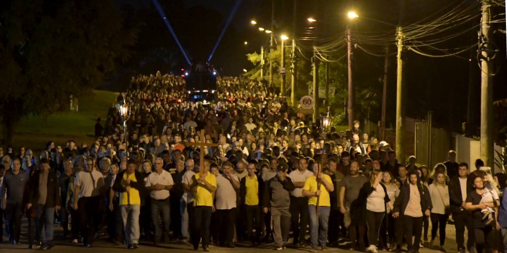 Fiéis vão do Santuário do Sagrado Coração de Jesus em direção a Matriz São Donato