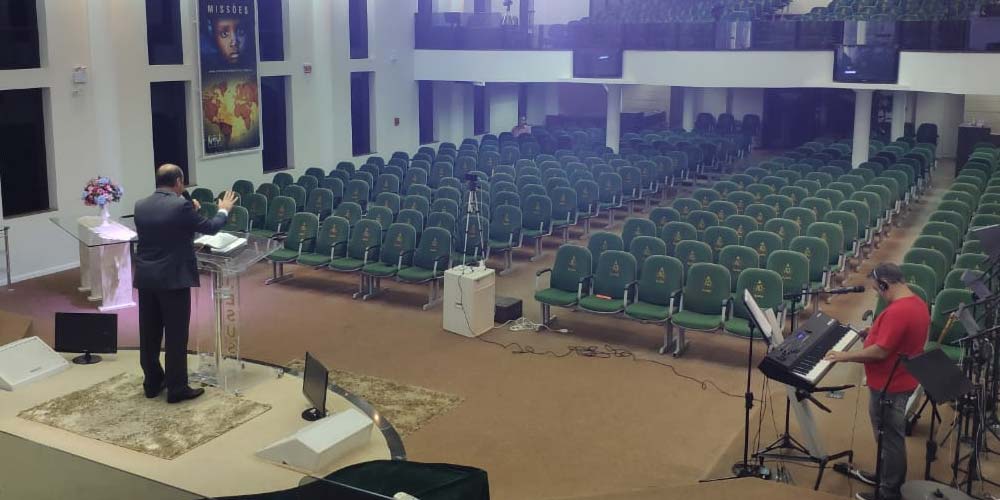 Os lugares de assento em templos e igrejas deverão ser disponibilizados de forma alternada entre as fileiras de bancos, devendo bloquear-se de forma física aqueles que não puderem ser ocupados. Outra determinação é que os atendimentos individuais ocorram apenas mediante agendamento. Em relação à transmissão on-line dos cultos sem público, a equipe responsável deve ser de, no máximo, cinco pessoas.