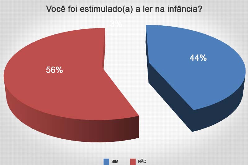 Por uma semana o Canal Içara questionou os internautas sobre o estímulo à leitura na infância. Infelizmente, 56% apontaram que não foram incentivados cedo. Apesar deles ainda serem maioria, não estão muito distantes da outra parte. É que 44% receberam o apoio para a leitura quando pequenos. Ao todo participaram 50 leitores que acessaram o portal entre 22 a 29 de junho.