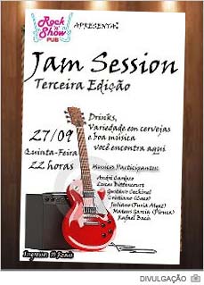 A mistura de músicos na Jam Session vai completar três edições nesta quinta-feira, dia 27. O evento vai acontecer no Rock´n Show Pub com ingressos a R$ 10. O repertório de rock e heavy metal terá André Cardozo, Lucas Bittencourt, Gustavo Cechinel, Cristiano (Caco), Juliano (Fúria Algoz), Mateus Garcia (Piruca) e Rafael Bacis. No sábado, o pub vai abrir então para Nem Bin Laden Acredita. A banda de Balneário Camboriúi promete clássicos do rock. Uma prévia pode ser acessada em palcomp3.com/NBLA.