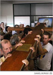 O católico Juarez Silva Cavagnoli fez questão de tocar nos símbolos e, em seguida, fazer o sinal da cruz. Emocionado, conta que esperava com ansiedade este momento. “Eu acompanhei nos jornais e notei o quanto é grandiosa a Jornada Mundial da Juventude. Se eu pudesse e fosse um pouco mais jovem, com certeza iria até o Rio de Janeiro”, fala. “Poder encostar na cruz que girou o mundo e que foi idealizada por João Paulo II é um grande motivo de alegria”, completa.