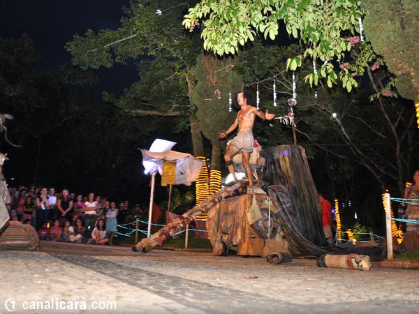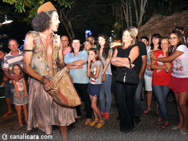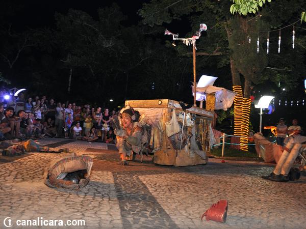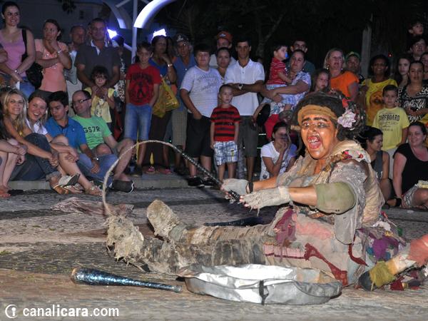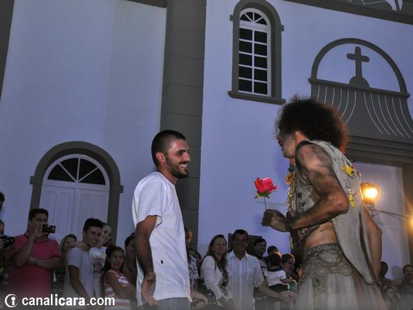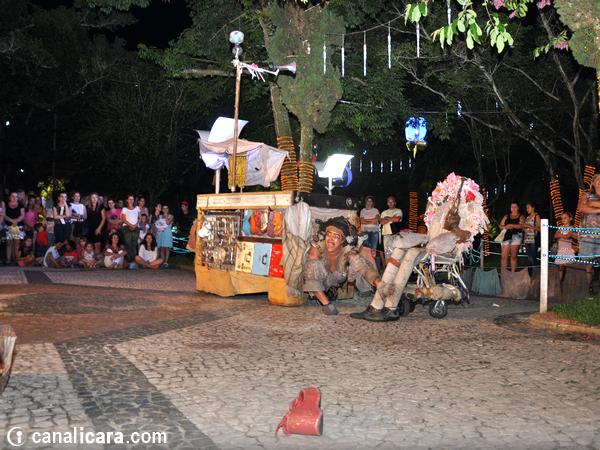 Ao contrário de Júlia e de Palheta, o público chegou timidamente na Praça da Matriz para conferir de perto a dança da aleijada e o seu maltrapilho assistente na noite desta segunda-feira, dia 15. Mas bastaram as primeiras brincadeiras e interações para que logo os içarenses lotassem o entorno do espetáculo a céu aberto. Os personagens de Yonara Marques e Reveraldo Joaquim arrancaram gargalhadas da plateia. E também cobraram por elas. Afinal, é assim que vivem os artistas de rua: um dia de cada vez conforme o que ganham.