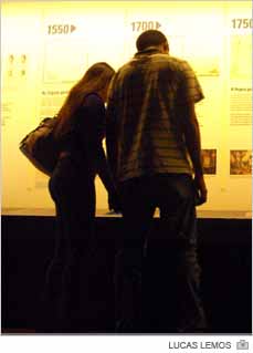 Projetores dão movimento para uma tela de 106 metros de extensão. A imagem encobre toda a lateral de um dos salões. Ao centro, totens exibem detalhes da comunicação primária do país. Ao clicar neles, é possível ouvir textos sem necessidade de qualquer fone de ouvido. Uma concha acústica direciona o som diretamente para a pessoa. Quem está fora não consegue escutar.
