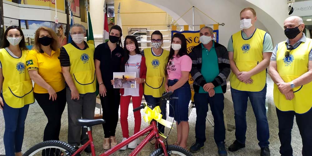 O Clube Lions de Içara realizou a entrega de uma bicicleta para a estudante Beatriz Fernandes Vieira na manhã deste sábado, dia 31. A aluna da Escola Quintino Rizzieri foi a vencedora do concurso de fotografia “O Meio Ambiente” com uma bela imagem do nascer do Sol no litoral. A obra foi impressa e também apresentada no ato realizado no Talismã Trade Center com a participação da coordenadora pedagógica Gabriela Luciano Fernandes e a professora Janaína Viana Colle.