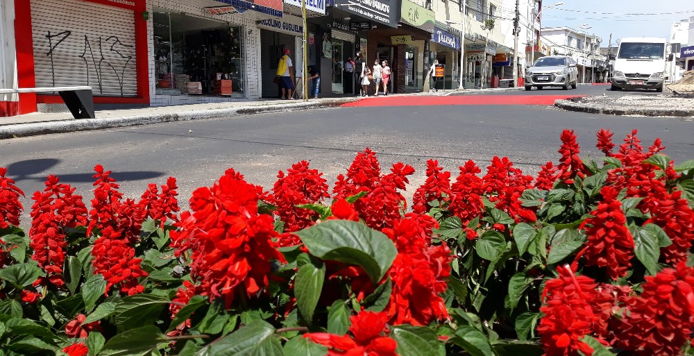 Lombofaixas recebem fundo vermelho no Centro de Içara para chamar atenção de pedestres e motoristas