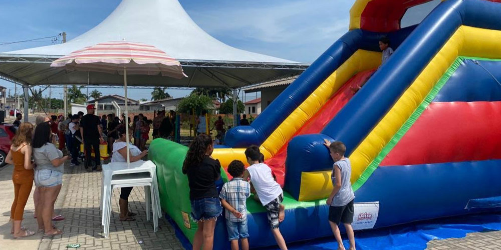 O Centro de Referência de Assistência Social (Cras) do bairro Jaqueline, em Içara, promoveu festas para as famílias nas comunidades de Poço Oito e Tereza Cristina neste fim de semana. A confraternização de Natal envolveu mais de 350 pessoas com algodão doce, cachorro-quente, pipoca, entre outras guloseimas, além de tobogã inflável e cama elástica.