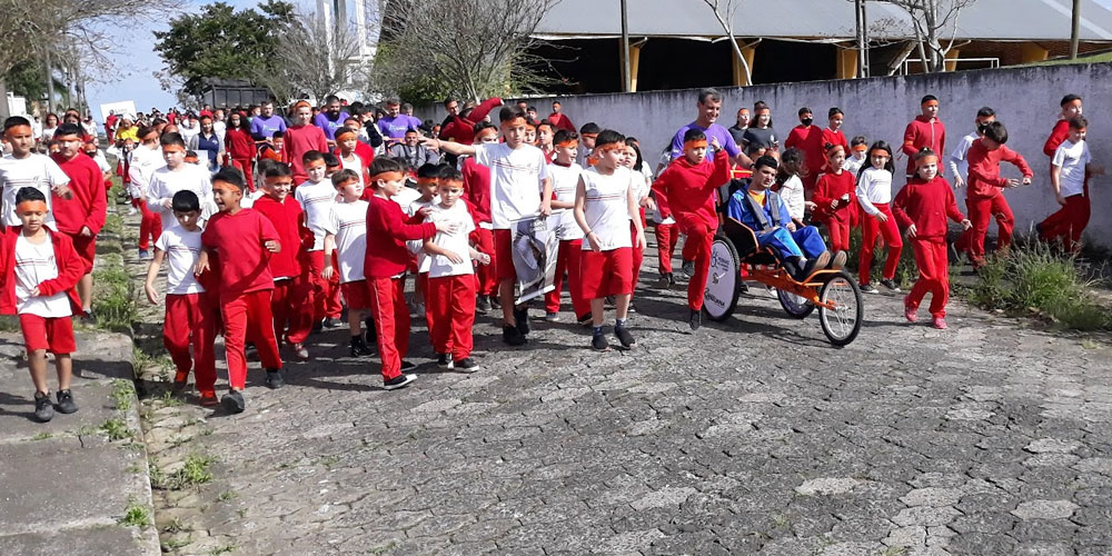 A Escola Quintino Rizzieri concluiu a Semana Científico-Cultural com uma maratona inclusiva nesta sexta-feira, dia 12. Os estudantes percorreram o entorno da escola junto com crianças que tem dificuldade de mobilidade e também ajudaram a conduzir os triciclos do projeto Pernas Solidárias. Além da gincana interna, a atividade integra o Agosto Laranja, mês dedicado à conscientização e prevenção de deficiências.
