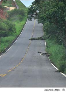 A ventania registrada ao final da tarde desta terça-feira provocou a interrupção de parte da marginal da BR-101 em Poço Oito. O bloqueio ocorreu em consequência da queda de galhos sobre a pista. Além da interferência no tráfego na via lindeira em direção ao norte, o bairro foi atingido também por raios. Um deles caiu sobre a cerca de uma empresa e provocou o incêndio de produtos adesivos que estavam expostos nos fundos da fábrica.