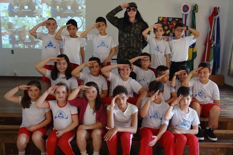 Gislaine Rodrigues trocou o jaleco pelo uniforme militar. E também mudou de nome para lecionar Matemática na Escola Maria Arlete Bitencourt Lodetti. A aula “up” da soldada Gigi teve jogos, vídeos, além de perguntas e respostas. “Foi um sucesso. Todos aprenderam muito e ainda saíram satisfeitos com as lembrancinhas que receberam: moedinhas de chocolates”, assinala.