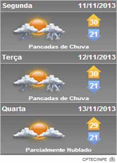 No início de terça-feira ainda terá nebulosidade e chuva no estado, entretanto, com aberturas de sol no decorrer do dia devido ao avanço de uma massa de ar seco. Temperatura agradável, com pequena elevação durante a tarde.
