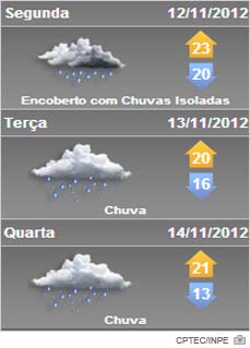 Na quinta, o calor pode provocar pancadas isoladas de chuva entre a tarde e noite nas outras regiões. Temperatura mais baixa na madrugada de quarta, com chance de geada fraca nas áreas altas do Planalto Sul. As temperaturas variam dos 12ºC aos 27ºC.