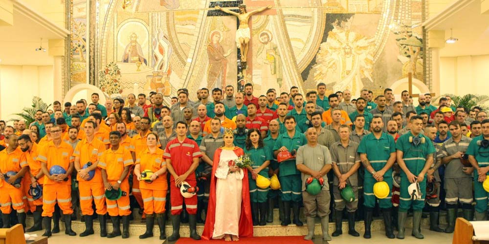 Para a cerimônia, o andor com a imagem de Santa Bárbara (padroeira dos mineiros) foi decorado com carvão bruto e folhas verdes, representando a evolução da mineração e o cuidado das empresas com o meio ambiente. Na entrada principal do santuário, um túnel também imitou as galerias de subsolo.