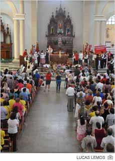"A tradição do Terno de Reis eu herdei do meu pai. Há 20 anos começamos para participação nas festas de Natal. Hoje representamos a cidade em todo o estado. Já estive inclusive nos Açores por três vezes. A celebração das bandeiras representa a união de diversas comunidades e entidades de tradição açoriana como nós", coloca Joelson Manoel Cardoso. O grupo Reis do Oriente presidido por ele foi responsável pela animação do ofertório.