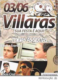 O movimento no trecho da SC-444 no bairro Mareli será intensificado novamente na noite desta próxima sexta-feira, dia 3. Isto por causa da realização de mais uma festa no Villaras. As atrações da balada serão Elton e Everton, Lucas Cruz e banda, além do DJ Euzébio. Os ingressos antecipados custam R$ 20 aos homens e R$ 10 para as mulheres. Eles estão disponíveis no Posto Nicão, no Centro de Içara. E, podem ser comprados ainda pela Internet, no Portal Ingressos (www.portalingressos.com.br).