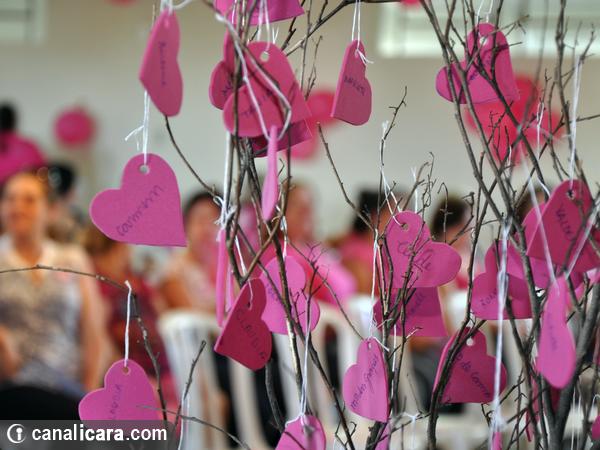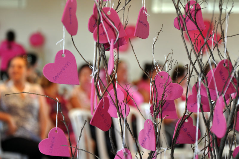 Cada coração representa um atendimento preventivo contra o câncer realizado neste mês. Reunidos em mais de uma centena, eles formaram então os frutos de uma árvore nesta quinta-feira, dia 23. O símbolo de todo o trabalho da equipe de Estratégia de Saúde da Família do bairro Presidente Vargas foi apresentado na programação especial do Outubro Rosa. As atividades da unidade de saúde foram para o Centro Comunitário nesta tarde para reforçar a prevenção numa palestra da oncologista Juliana Althoff e uma caminhada.