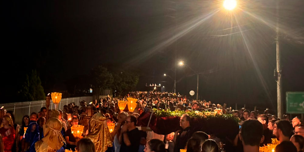 Ao longo do trajeto, os fiéis vivenciaram as estações da Via-Sacra em um clima de oração, silêncio e reflexão. A cada parada, recordaram os passos de Jesus Cristo rumo ao Calvário, revivendo simbolicamente o caminho da cruz até a crucificação e provocando também reflexão às cruzes da sociedade atual, como as mazelas causadas pela violência, as drogas e também as condições de vida dos mais desfavorecidos.