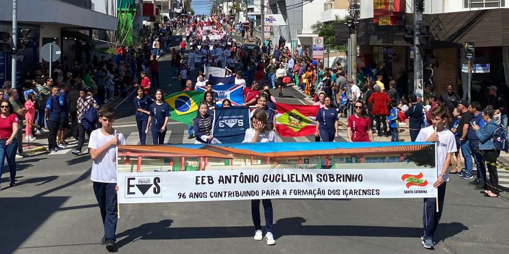 O Desfile Cívico de Içara atraiu um público de quase 10 mil pessoas à Rua Altamiro Guimarães na manhã desta quinta-feira, dia 7. Ao todo, 180 pelotões foram formados por aproximadamente 4,5 mil pessoas, neste ano, com o tema Pátria, Brasil e Independência. Fizeram parte o 28º Grupo de Artilharia de Campanha (28º GAC), órgãos de segurança, associações e entidades da cidade, além da rede de ensino e demais órgãos municipais.