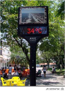 Município projeta novos relógios e termômetros digitais em espaços públicos