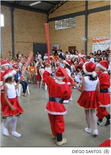 O Natal chegou mais cedo para as 300 crianças do Serviço de Convivência e Fortalecimento de Vínculos (SCFV) de Içara e do Balneário Rincão. A festa foi realizada pela Secretaria de Assistência Social de Içara em parceria com a Associação Educar na manhã desta sábado, dia 7. O evento na Fundação Assistencial de Içara contou com apresentações artísticas e culturais, além da distribuição de material esportivo, brincadeiras e a formatura dos alunos de capoeira do projeto Mais Cultura, Menos Violência.