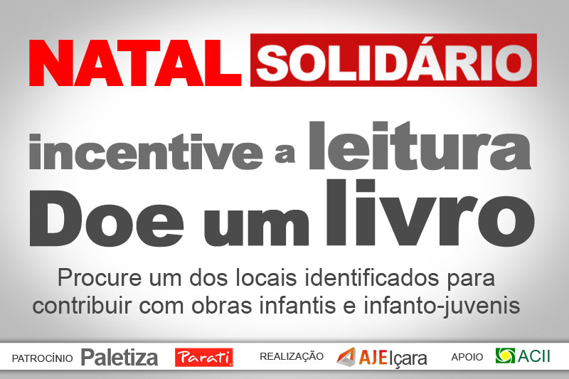A Associação de Jovens Empreendedores vai garantir a diversão das 150 crianças e adolescentes do Centro de Referência de Assistência Social Jorge Elias De Lucca do bairro Jaqueline com arrecadação de livros infantis e infanto-juvenis. Este é o foco do Natal Solidário de 2014. Os pontos de coleta serão identificados com cartazes da campanha a partir já desta quarta-feira, dia 12. Além das caixas distribuídas no comércio, as doações também poderão ser realizadas no próprio Cras.