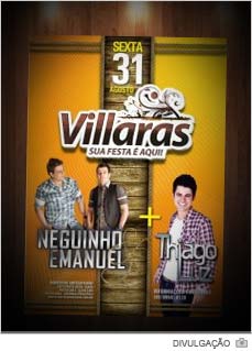 Dupla de sucesso regional, Neguinho & Emanuel serão os destaques do Villaras nesta sexta-feira, dia 31. E o casarão no bairro Mareli terá ainda Thiago Luz para reforçar a balada. Os ingressos antecipados já estão disponíveis. Em Içara eles podem ser encontrados no Posto Nicão e Posto Chile. Já em Criciúma estão no Posto Chile da Próspera. Aos homens custam R$ 20. Para as mulheres o preço é a metade: R$ 10.