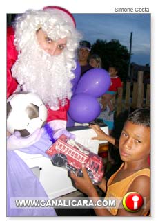 Mesmo com o forte calor de domingo, voluntários se vestiram com roupas vermelhas, gorros e botas, como se estivessem no Pólo Norte. Tudo para garantir a distribuição de quase quatro mil brinquedos para as crianças da cidade. O evento integrado na Gincana Verão Mais, da Prefeitura Municipal de Içara, levou a alegria dos Noéis para 10 comunidades.
