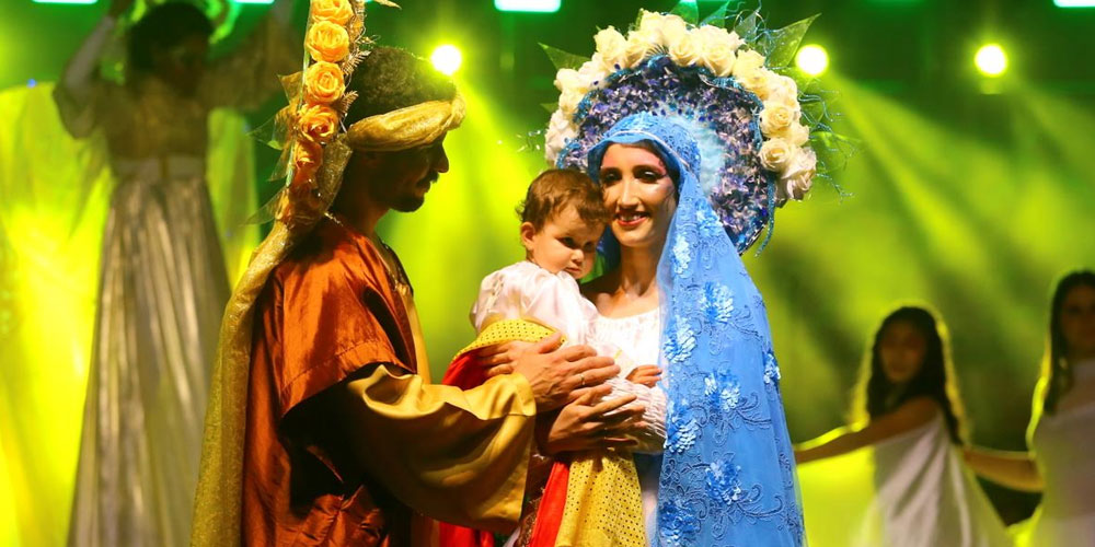 O casal que interpretou Maria e José foi Allan Minatto e Vanessa Begnini ao lado da filha de 11 meses, Anna. “Participei das edições anteriores sempre interpretando outro personagem, principalmente como Rei Mago. Mas desta vez, com a minha filha, é a primeira vez que representarei José e também traremos o menino Jesus. É uma experiência muito emocionante para nós, já que adoramos o Natal e participar de um evento tão grandioso sempre nos enche de alegria e emoção”, comentou Allan, que teve a emoção compartilhada pela esposa, a Maria do espetáculo pela 5ª vez.