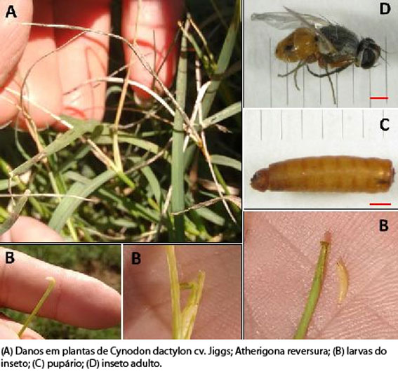 “É cedo para dizer quais serão os efeitos dessa praga no Estado. Ela pode se alastrar e causar prejuízos ou ter inimigos naturais”, explica o entomologista da Epagri, Leandro do Prado Ribeiro. Estima-se que cultivares de grama-bermuda sejam utilizados em pelo menos 70% das propriedades produtoras de leite do estado. A mosca-da-grama-da-bermuda coloca os ovos nas plantas e, quando eles eclodem, as larvas se alimentam das brotações da pastagem.