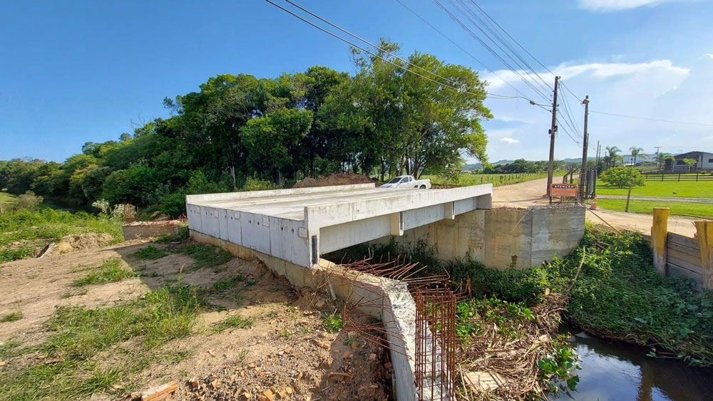 A Rodovia Mário Ghedin, no bairro Ponta do Mato, recebeu a estrutura de novas pontes nesta sexta-feira, dia 10. Os kits de transposição foram enviados pela Defesa Civil de Santa Catarina. Ao Município coube então o investimento de quase R$ 226 mil nas cabeceiras. A previsão é que a passagem de veículos esteja liberada no prazo máximo de 30 dias.