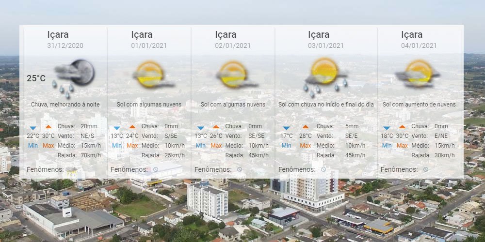 Os próximos dias serão quentes e com baixa previsão de chuva. Para Içara, o Centro de Informações de Recursos Ambientais e de Hidrometeorologia de Santa Catarina aponta de 13°C a 30°C no período. Confira a previsão completa.