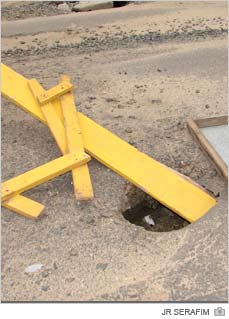 Um novo remendo será preciso na Avenida Procópio Lima devido ao surgimento de outro buraco nesta quinta-feira, dia 21. Desta vez ainda com proporções modestas se comparadas as crateras que chegaram a ser registradas desde janeiro de 2013. O transtorno ocorre próximo a Praça da Juventude Fernando Pacheco. No local o Sistema Autônomo Municipal de Água e Esgoto colocou um cavalete para evitar acidentes. A medida é paliativa até que seja recuperado o asfalto.