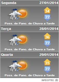 As temperaturas nestes próximos dias variam dos 15ºC aos 35ºC. Na quarta-feira terá Sol com mais nuvens e pancadas de chuva entre a tarde e noite. Ainda conforme a Epagri/Ciram, a possibilidade de chuva sumirá apenas na quinta-feira.