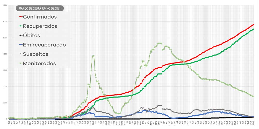 Os dados de junho mostram a desaceleração da covid-19 em Içara. A cidade teve 615 novos diagnósticos no mês, mas o número de recuperados foi superior, com 694. O mês fechou ainda com 168 pessoas em tratamento e, conforme o painel estadual de monitoramento da doença, com mais 19 óbitos. A cidade atingiu até agora 5824 casos confirmados, 5538 recuperados e 118 mortes causadas por complicações do coronavírus.