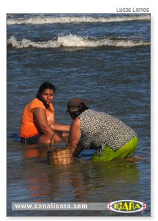 No café da manhã, no almoço e também na janta. O marisco está presente na alimentação de diversas pessoas, principalmente daquelas que vivem próximas do mar. Este é o caso de Marlene Pedro Costa. A moradora do Rincão, junto da amiga Zuleide Santina Borges, que veraneia no balneário içarense, sempre que podem vão à praia em busca do molusco. No último fim de semana, elas também foram para beira-mar da Zona Sul. Mas, não estavam sozinhas. Centenas de pessoas também procuravam o marisco.