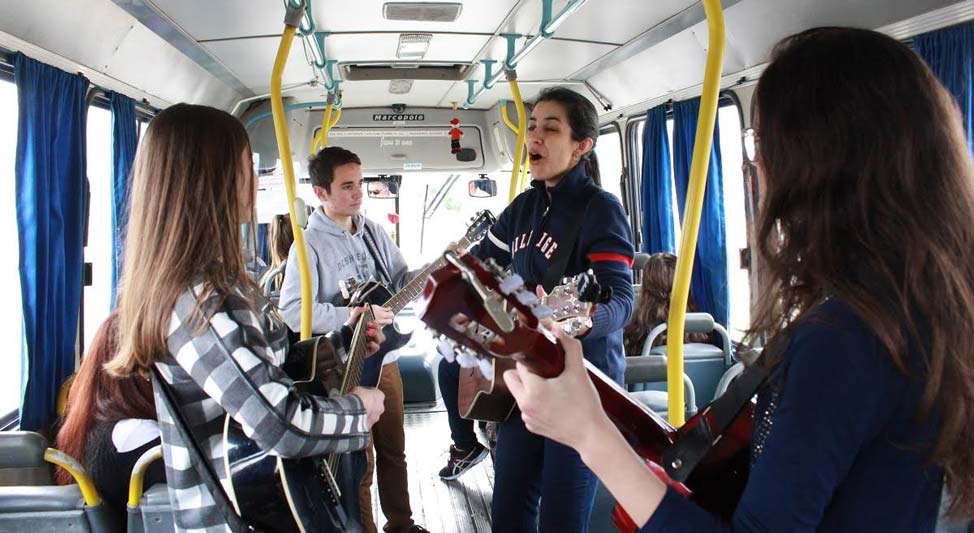 Os pais que utilizaram o transporte coletivo foram surpreendidos em Içara na tarde desta sexta-feira, dia 11. Isto porque os alunos da oficina de violão da Fundação Municipal de Cultura e Esportes embarcaram junto com a professora Lane Custódio em uma homenagem musical. "Foi um momento muito bem recebido. Todos os usuários participaram, interagiram, vibraram e também receberam uma pequena lembrança. Nossos alunos e professora foram aplaudidos de pé", destaca a presidente da FMCE, Maria Tereza Chagas.
