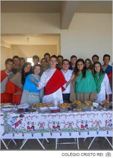Os alunos do terceirão do Colégio Cristo Rei encenaram a Paixão e morte de Jesus nesta quarta-feira, dia 16. Além disso, todas as turmas foram reunidas para um lanche coletivo como símbolo da partilha e da vivência nos verdadeiros valores na Páscoa. “Com certeza iremos levar uma lição de fé para casa”, enaltece a estudante do primeiro ano do ensino médio, Daniela Liara Timm.