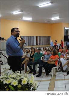 O preparativo para o ano letivo da rede municipal de ensino contou com uma ação motivacional nesta terça-feira, dia 19. O evento foi realizado com profissionais da Secretaria Municipal de Educação, de Assistência Social e da Fundação Municipal de Esportes no Salão Paroquial São Donato. A palestra "Professor: vida, morte e ressurreição" ocorreu sob o comando do doutor e autor Júlio Cesar Furtado dos Santos.