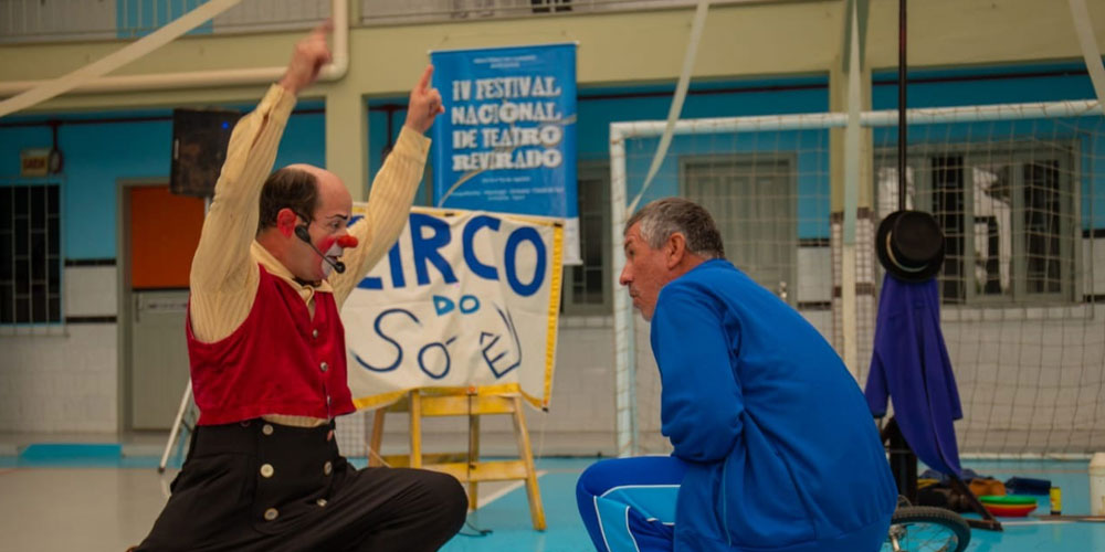 Palhaço Zamborim provocou muita diversão a estudantes e professores na Apae de Içara na manhã desta terça-feira, dia 9. O espetáculo Circo Só do Eu, do Grupo Barracão de Teatro de São Paulo, reuniu aproximadamente 140 alunos das Apaes também de Cocal do Sul e Morro da Fumaça. Entre eles estava Rogério dos Santos, de 55 anos. Mais do que um espectador, ele experimentou ainda a emoção de estar no palco e se divertiu: “Fiquei muito feliz”.