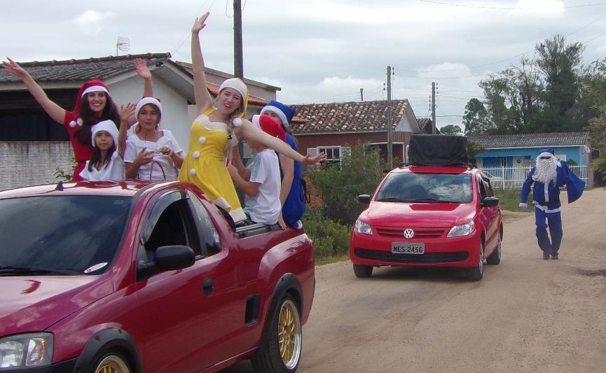 Os moradores de Vila Nova e Jardim América foram surpreendidos pelo Papai Noel do Ana Paula Musical na véspera do Natal. Foram 12,1 quilômetros com a distribuição de doces. “O Natal já traz uma reflexão para a gente em função de seu significado e com esta ação a gente quis levar um pouco mais de alegria às crianças, aos idosos, às pessoas de todas as idades. O gesto é simples, mas a gente acredita que de alguma forma pode fazer a diferença”, comenta uma das integrantes do musical, Ana Paula Guglielmi Heckler.
