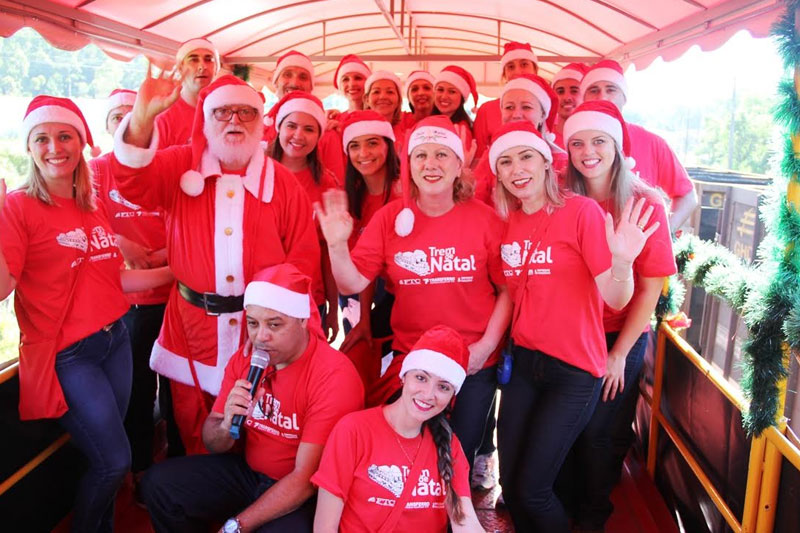 Neste ano, ficou combinado com o bom velhinho e os ajudantes ferroviários, uma viagem de 164km. Os vagões estarão carregados com 500kg de balas e 20 mil brinquedos. O Trem de Natal já faz parte da história da Ferrovia Tereza Cristina. Desde a primeira edição do Trem de Natal há 20 anos, mais de 200 mil brinquedos e cerca de 6,5 toneladas de balas foram doados.