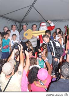 O bom velhinho causou alvoroço entre a criançada na noite desta quarta-feira, dia 5. Papai Noel chegou com o trem da alegria, percorreu a Praça São Donato e recebeu a chave da cidade pelas mãos do prefeito Gentil Da Luz e do presidente da Câmara de Dirigentes Lojistas José Dionísio Cardoso. O evento teve a participação também do deputado estadual Manoel Motta (PMDB) e de secretários municipais.