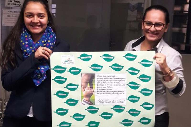 Os nomes de funcionários e prestadores de serviço vinculados diretamente ao Hospital São Donato foram concentrados em um único painel pela Comissão de Humanização. Todos viraram folhas essenciais na árvore da vida. "Ser pai é ser protetor, amigo, professor e aluno todos os dias. São valores que também são importantes na rotina do HSD. Através da homenagem aos colaboradores parabenizamos todos os pais", coloca a coordenadora da comissão, Nilza Kauling.